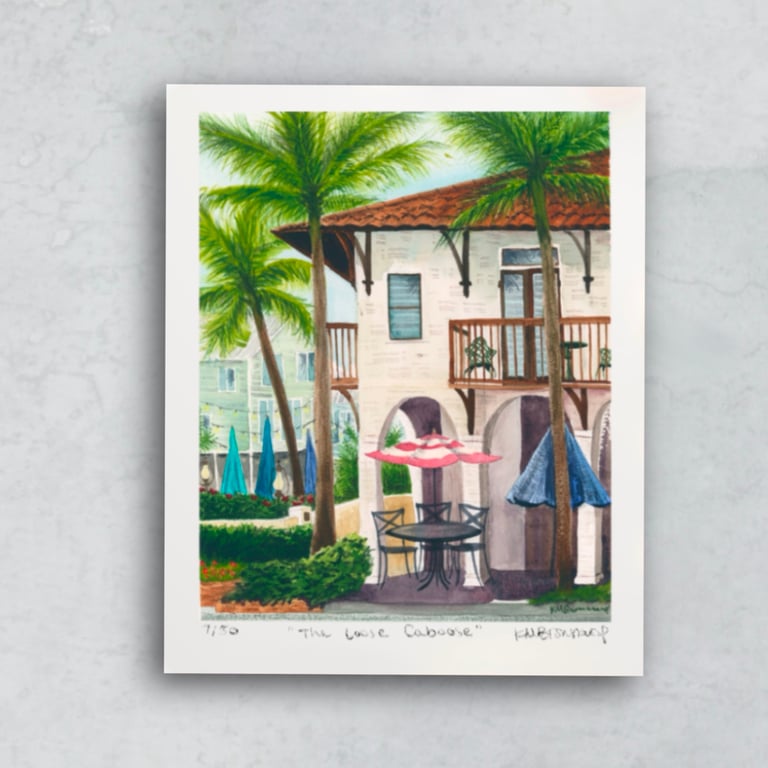 11x14 inch watercolor print of a breezy outdoor cafe in downtown Boca Grande.